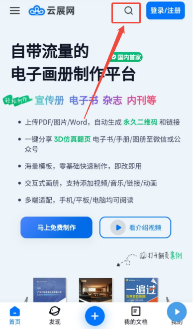 打開云展網(wǎng)APP,點擊【發(fā)現(xiàn)】,上方搜索欄輸入關(guān)鍵詞搜索。