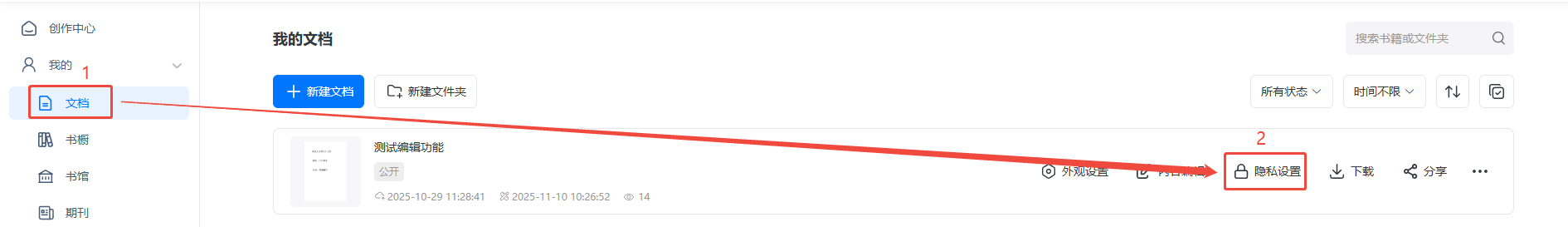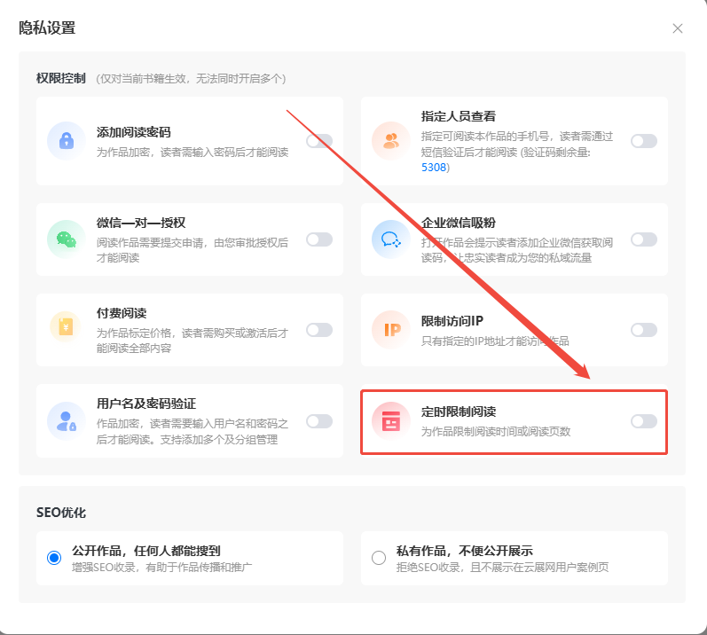 點擊【文檔】,找到電子畫冊再點擊【隱私設(shè)置】,開啟【定時限制閱讀】。