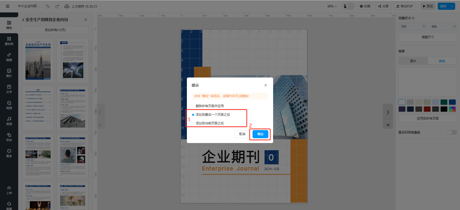 部分用戶認(rèn)為我們的模板頁數(shù)偏少,使用單一套模板會顯得單調(diào)。其實,可以通過添加空白頁面或者將多套模板組合在一起靈活使用,以增加頁數(shù)。