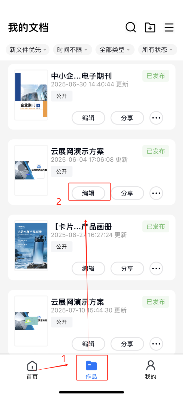 在【作品】頁面,點(diǎn)擊【編輯】進(jìn)入