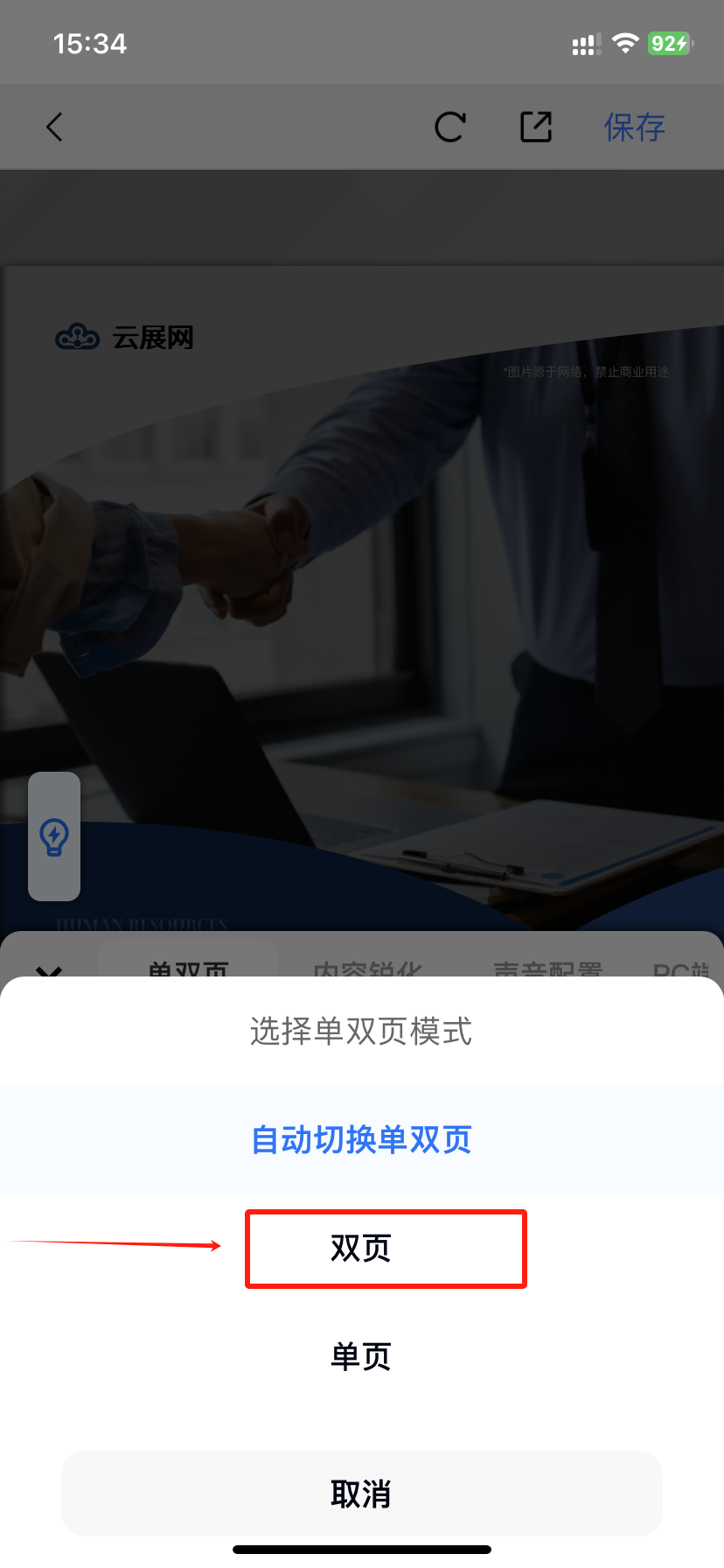 如果您的書本有兩頁需要同一個(gè)畫面連著看,可將電子書設(shè)置為雙頁顯示模式。電腦端和手機(jī)端都會(huì)以雙頁形式展示。
