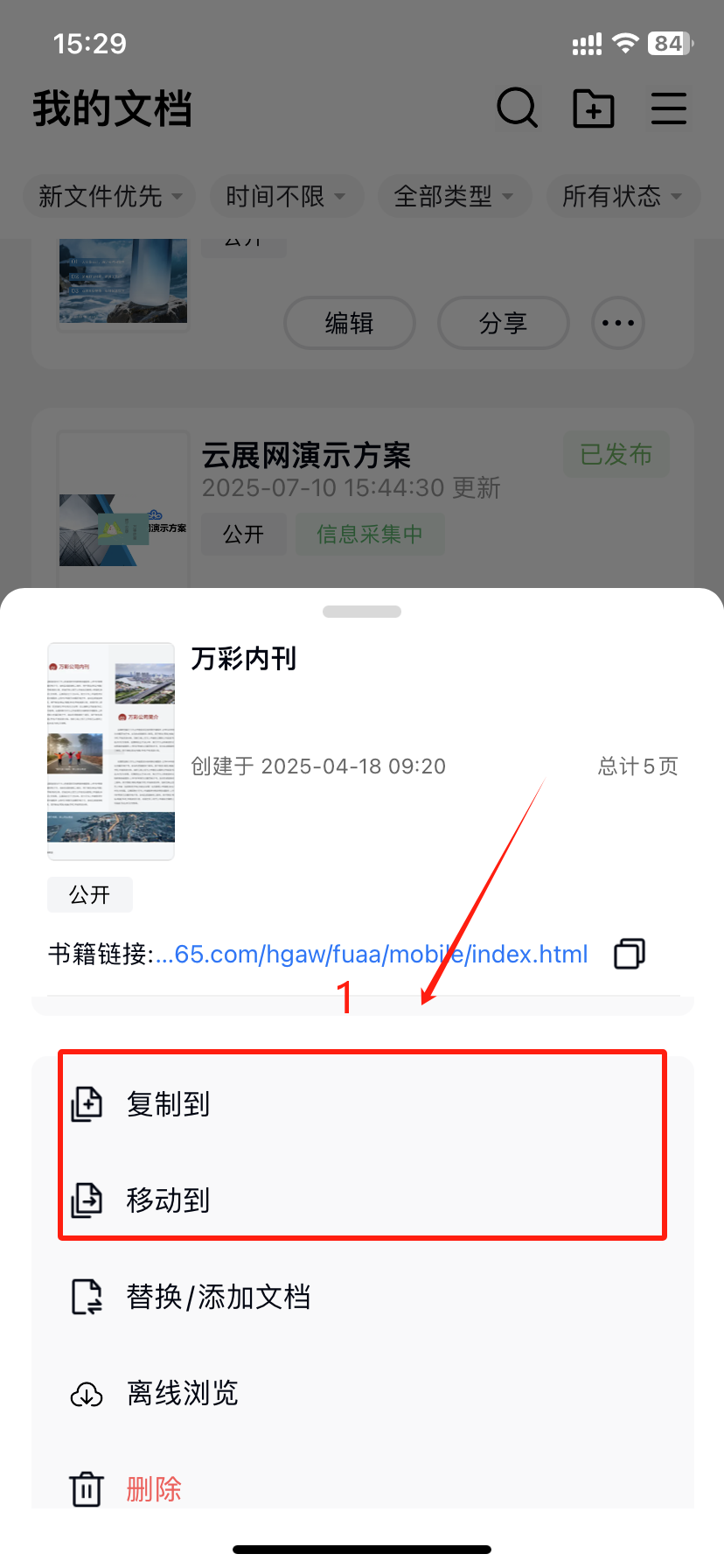 在【作品】頁面,找到需要復(fù)制/移動(dòng)的書本,點(diǎn)擊三個(gè)點(diǎn)【…】打開