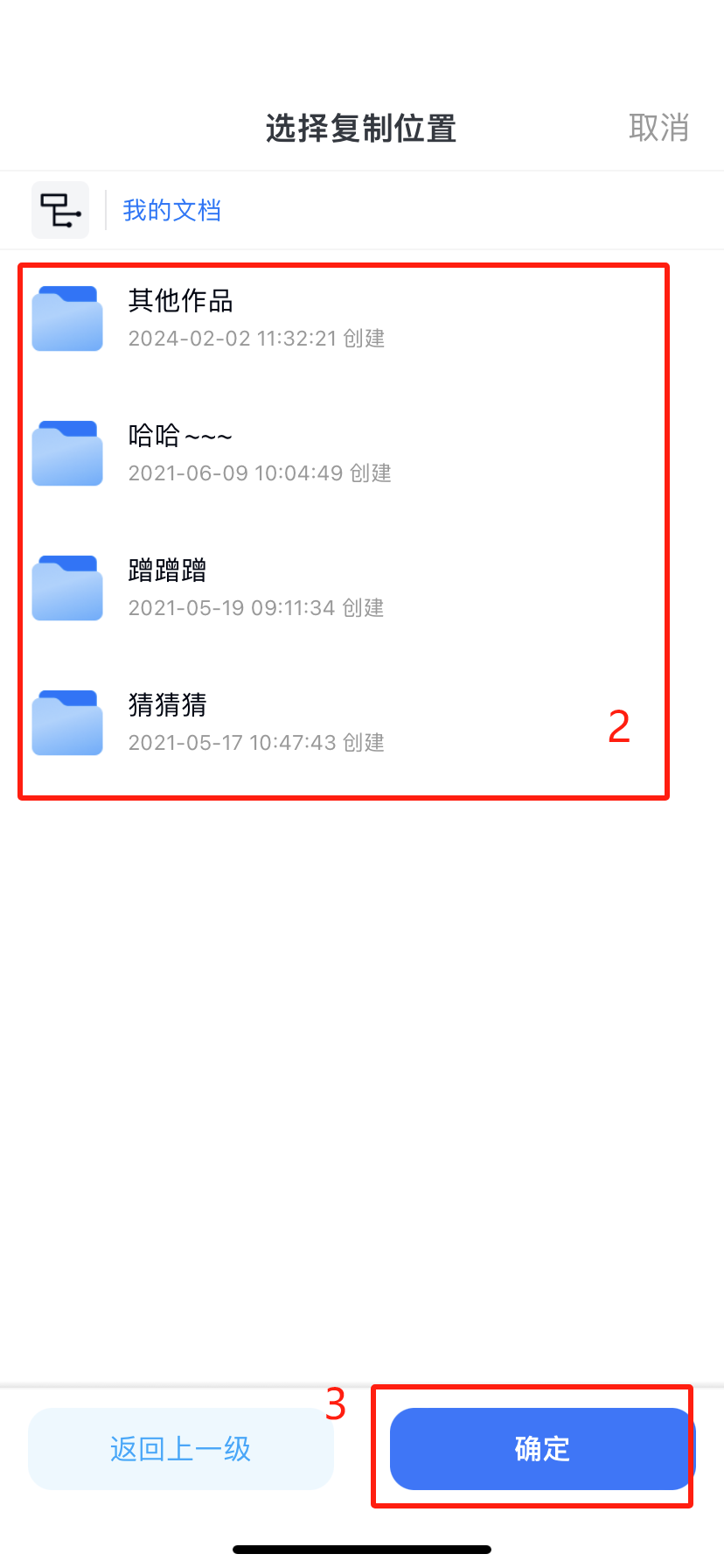 往下滑動(dòng)頁面,根據(jù)自身需求,點(diǎn)擊【復(fù)制到】或者【移動(dòng)到】后,選擇文件夾后點(diǎn)擊【確定】
