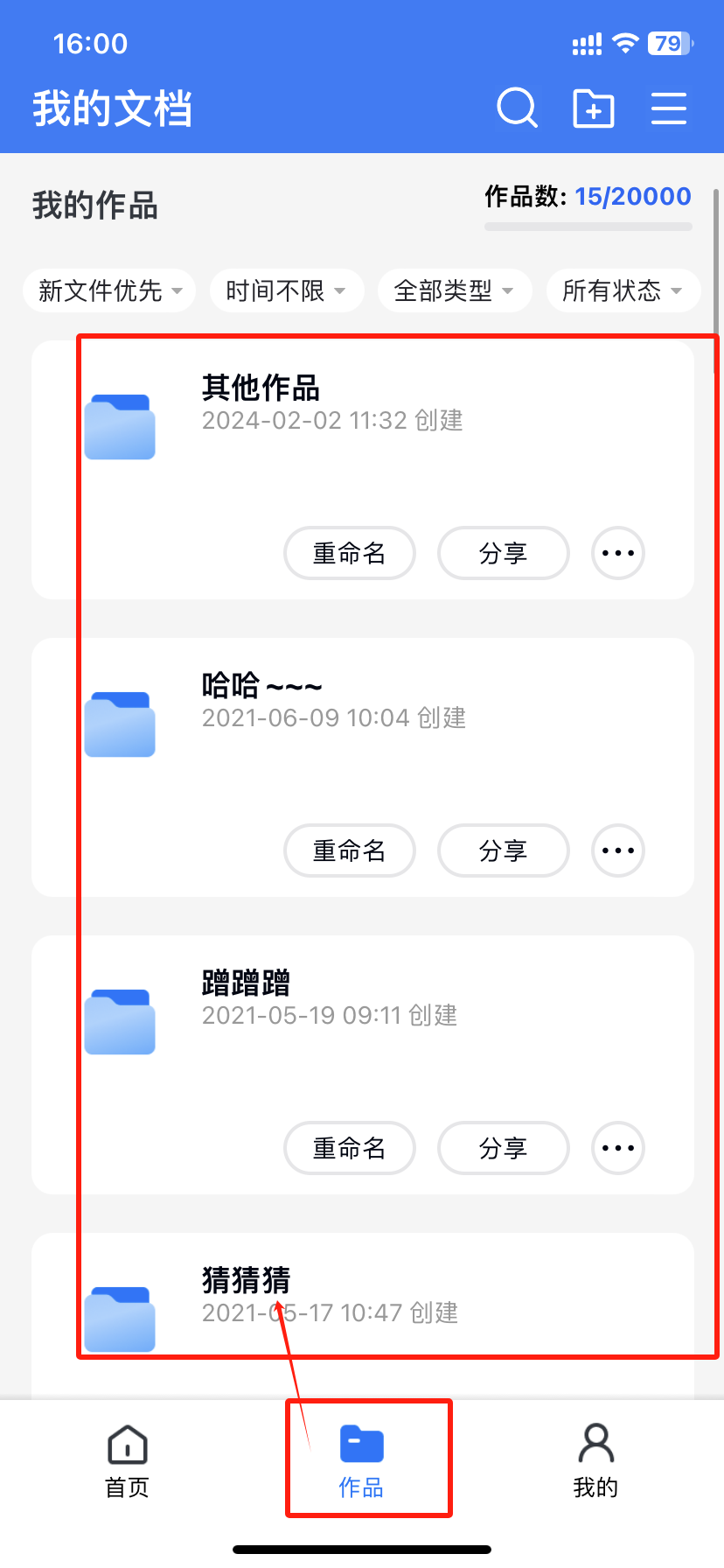 在【作品】頁面點(diǎn)擊您選擇的文件夾進(jìn)入后可以找到書本