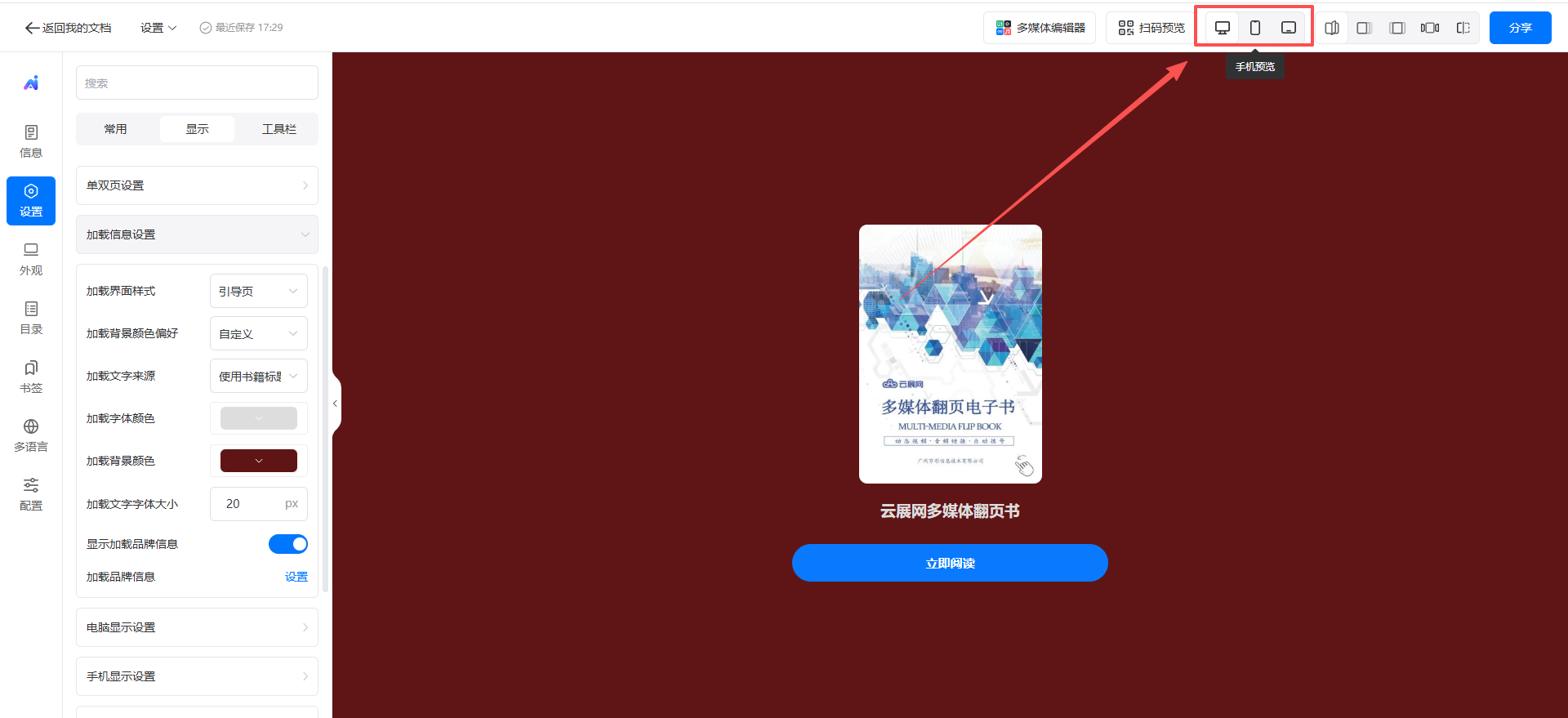 用戶可以自定義設(shè)置電子書加載頁面的文字,圖片、和添加視頻作為開場介紹,還可以在加載頁面上展示自己的品牌信息,實現(xiàn)個性化展示和品牌推廣。