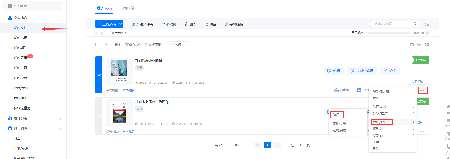 1)如果您不想你的書被所有人看的話,可以停用書本,停用書本不會(huì)刪除書,但是打開鏈接看不到書本內(nèi)容;