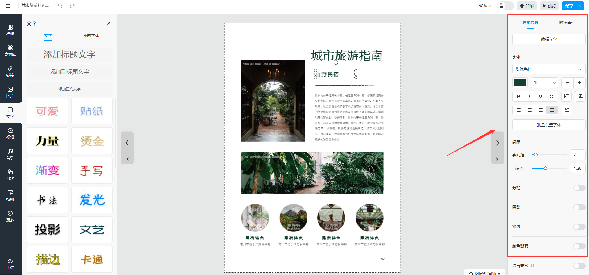添加文字功能可以在空白文檔中快速添加文本區(qū)域、標題、副標題及使用酷炫文體。也可以在生成電子書后,追加文字而不用重新上傳文檔。添加文字可以提供內(nèi)容解釋和詳細信息,引導(dǎo)讀者更深入理解。