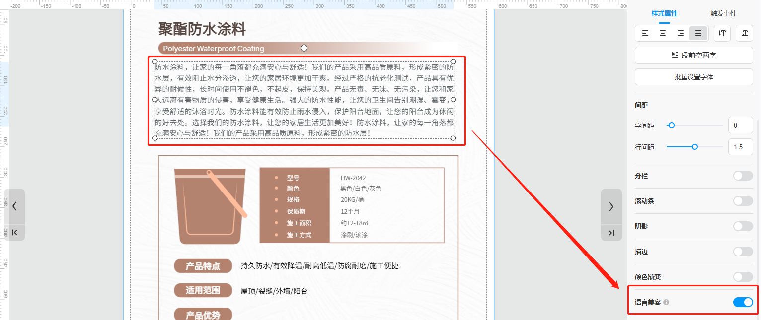 如果文本框中有文字或者標點符號顯示異常,可以選中文本框打開【語言兼容】,就會恢復(fù)正常。
