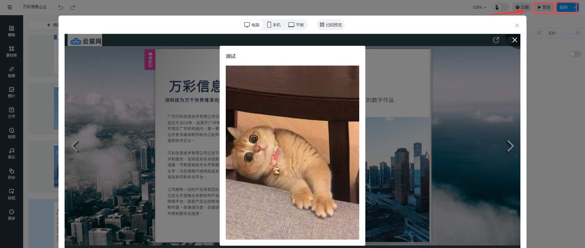 設(shè)置好以后點擊右上角的【保存】,點擊【預(yù)覽】查看效果