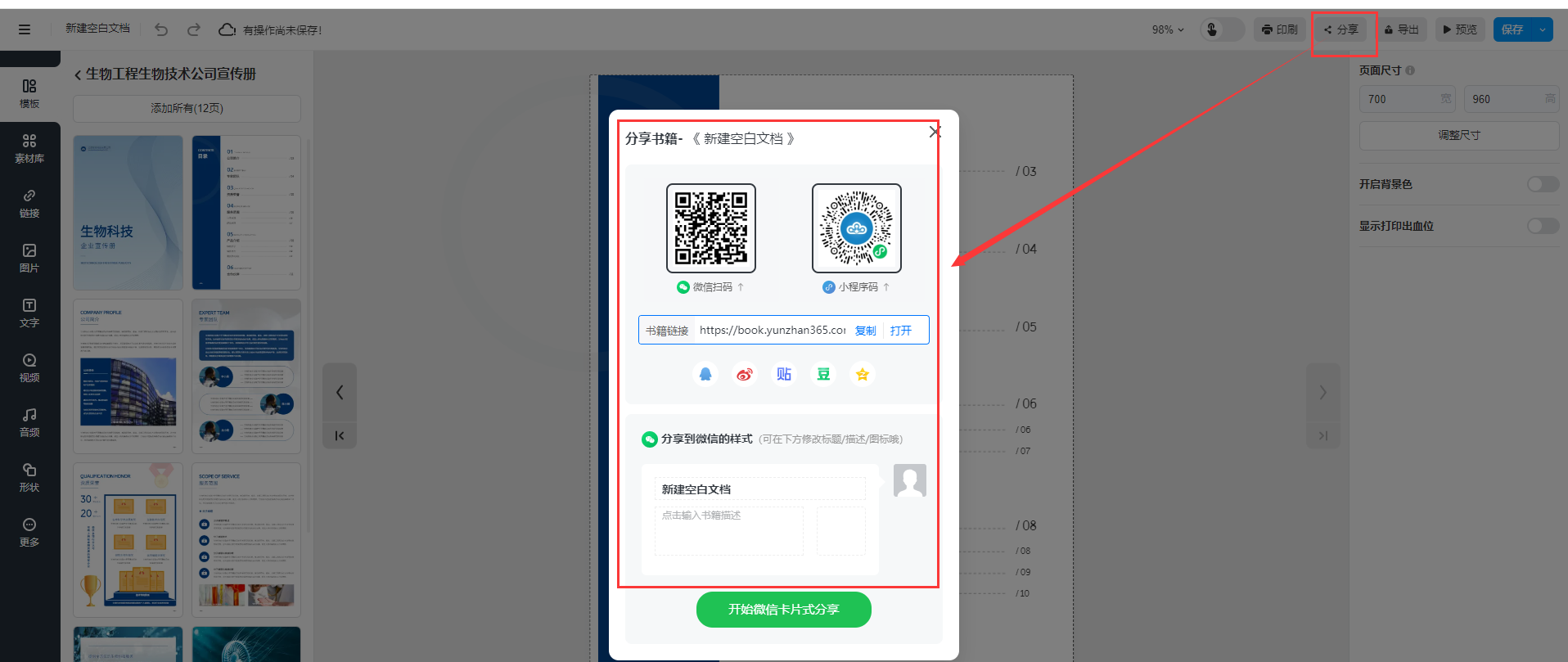 點(diǎn)擊【保存】按鈕,保存后的電子書(shū),可以點(diǎn)擊【分享】發(fā)送到朋友圈或通過(guò)鏈接/二維碼分享到微信/QQ好友。