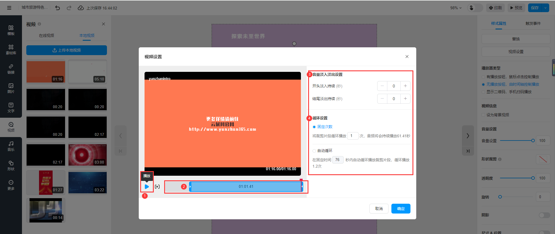 ③音量淡入淡出設(shè)置:視頻的音樂(lè)淡入淡出持續(xù)時(shí)間