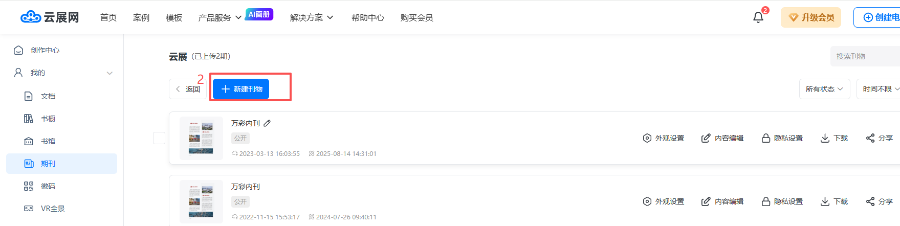 (1)點(diǎn)擊【管理期刊】進(jìn)入,然后點(diǎn)擊【新建刊物】