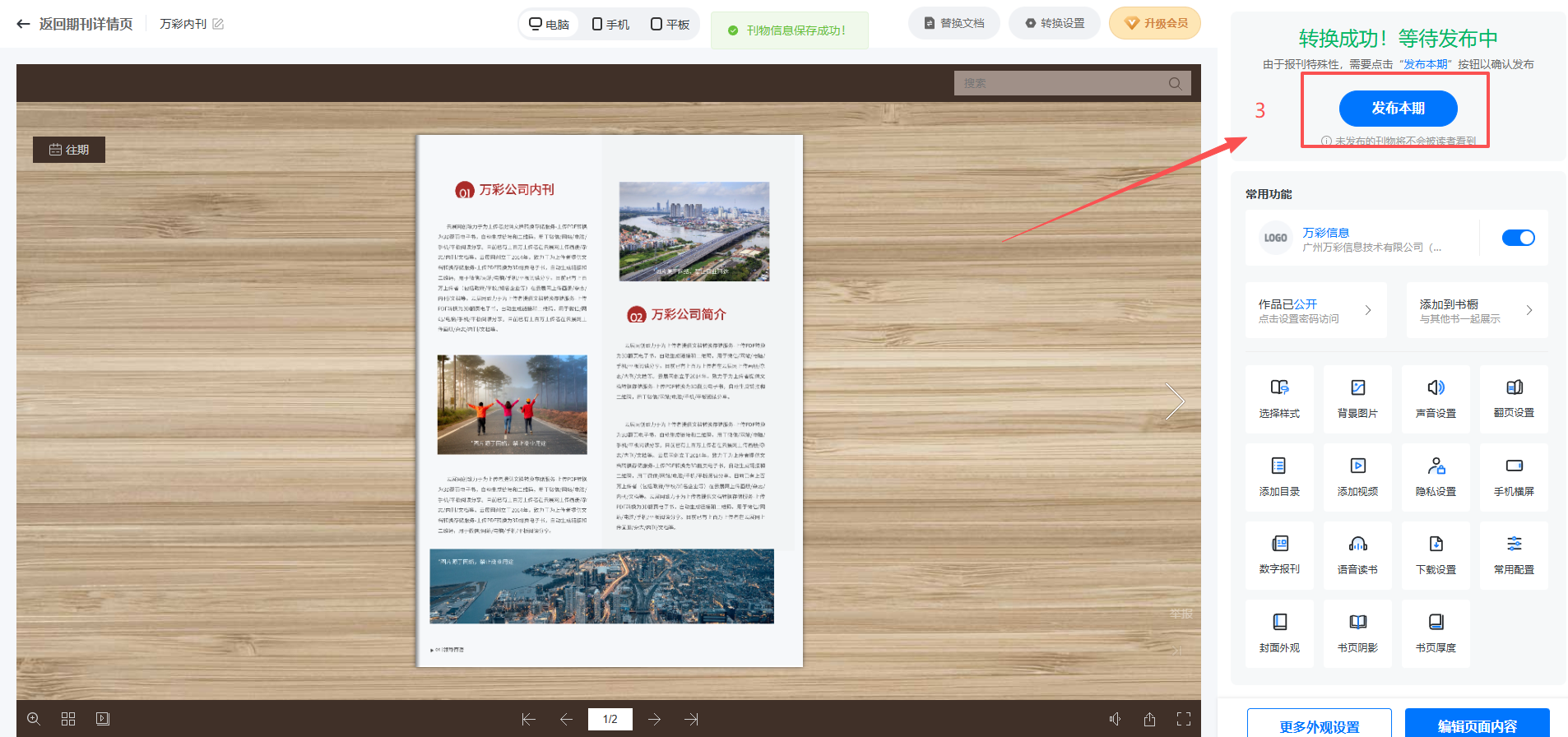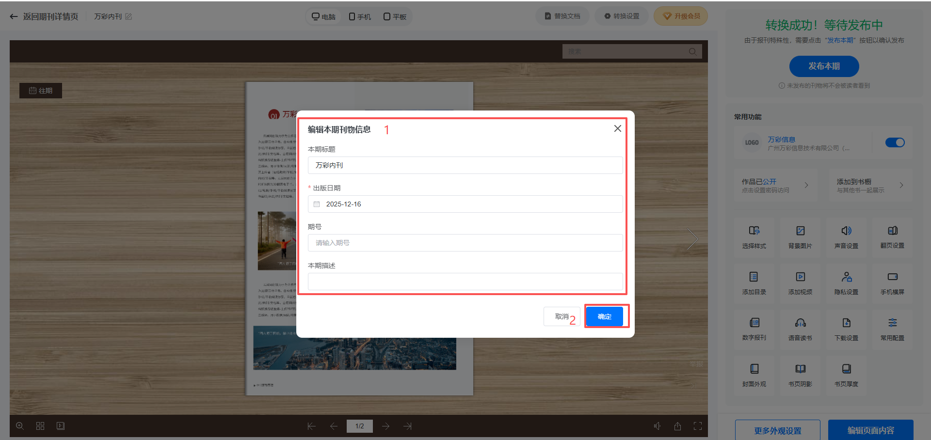 (3)設(shè)置刊物信息,設(shè)置好后點(diǎn)擊【發(fā)布本期】發(fā)布。