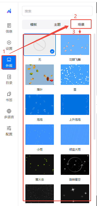 注意:動態(tài)背景會占用較大的內(nèi)存,如果在使用之后移動端觀看電子畫冊感到明顯卡頓,建議關(guān)閉動態(tài)背景,改用靜態(tài)背景或者純色背景。