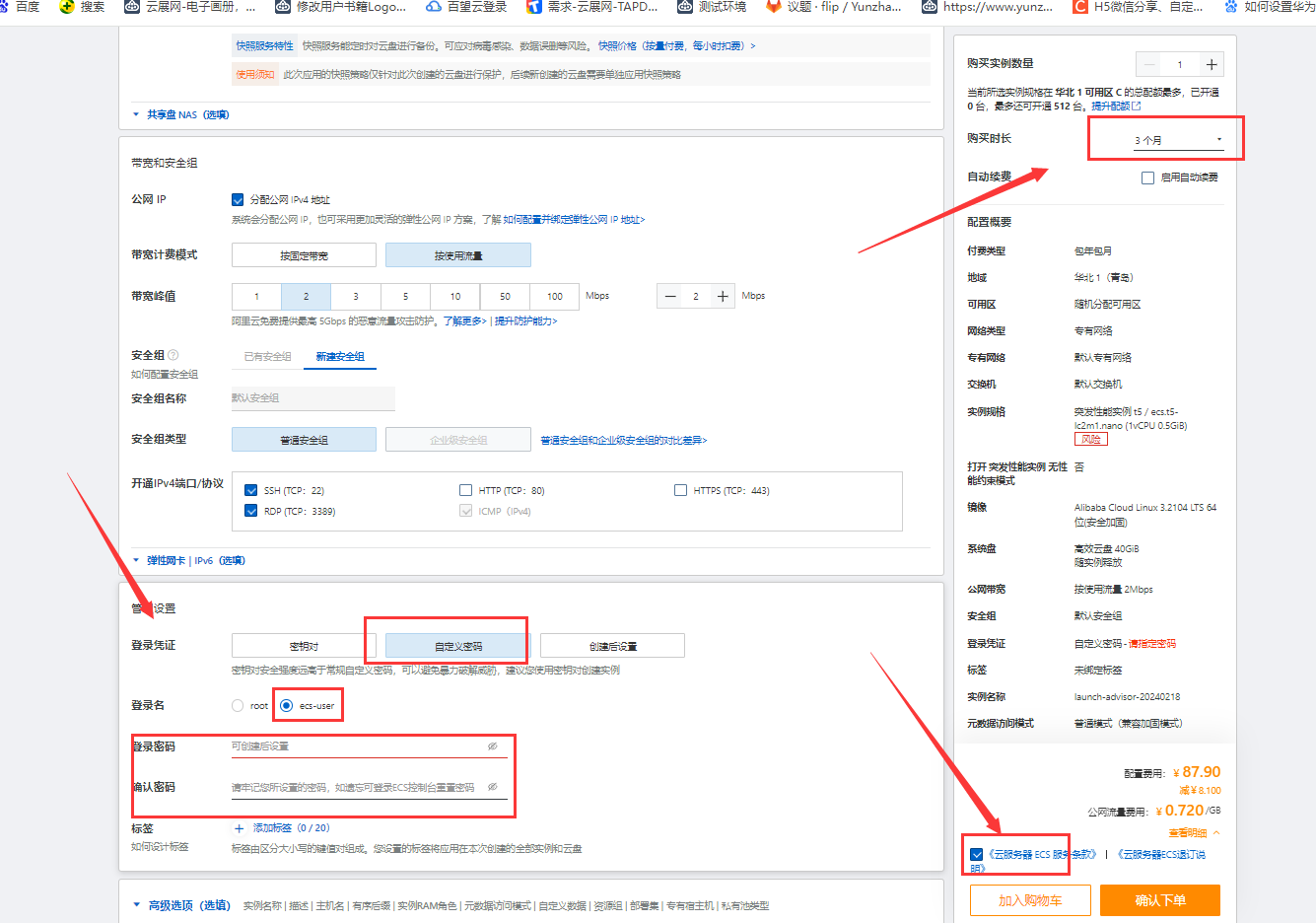 (2)購買云服務(wù)器,至少買三個(gè)月的,因?yàn)橹皇怯脕砩暾垈浒阜?wù)碼和綁定用的,所以買最便宜的就行。