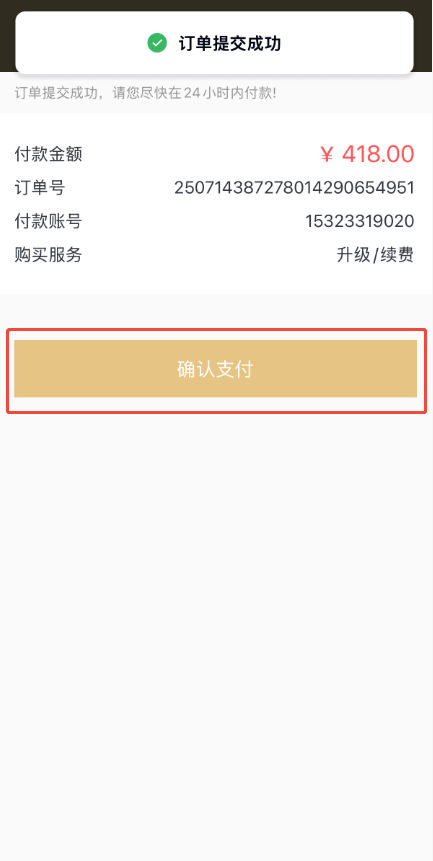 • 下方截圖是以ios端為例,安卓端和電腦端可以選擇微信或者支付寶支付。