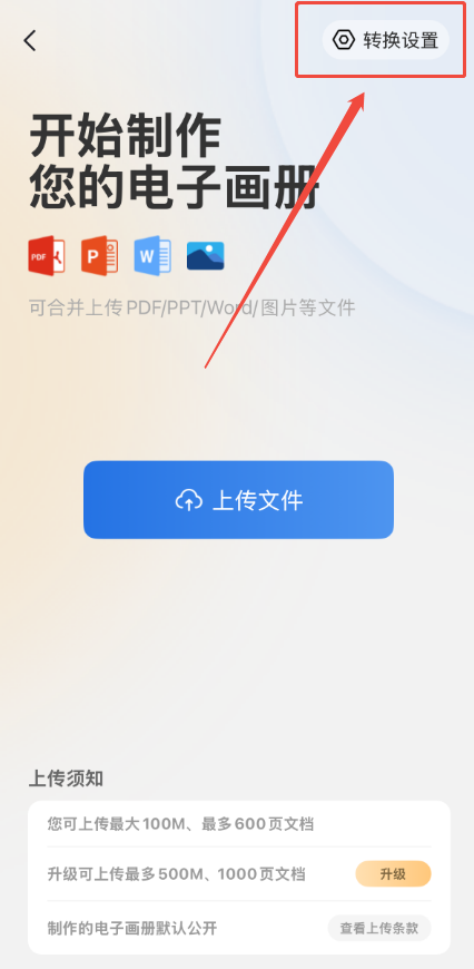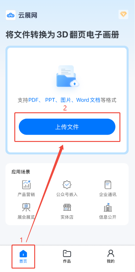 點擊【首頁】,然后點擊【上傳文件】,打開上傳界面。