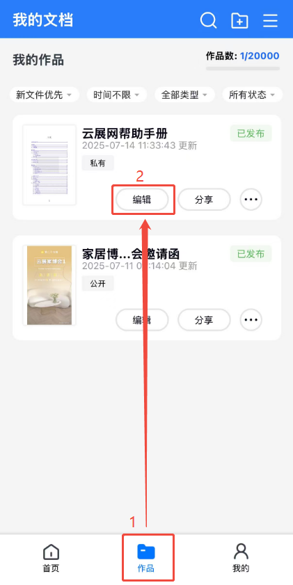 (1)點擊【作品】,然后點擊對應電子書的【編輯】,最后點擊下方【基本設(shè)置】。