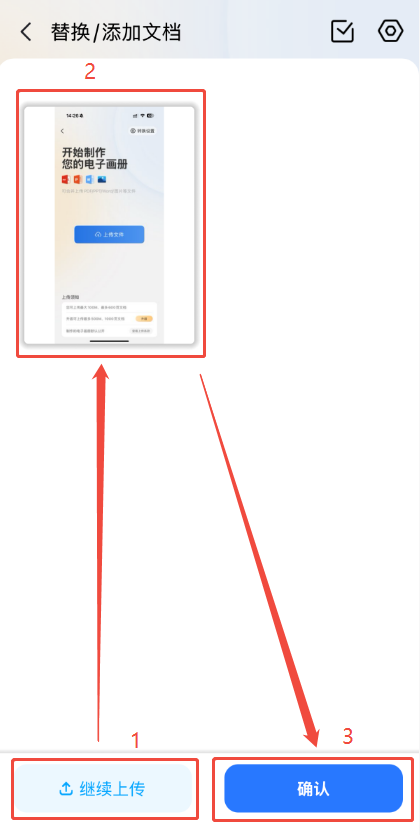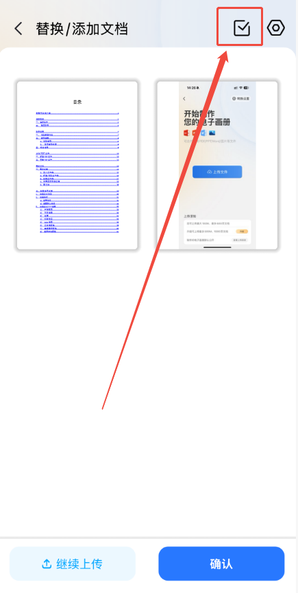 b)點(diǎn)擊左下角【繼續(xù)上傳】上傳新文件后,點(diǎn)擊確認(rèn)即可。