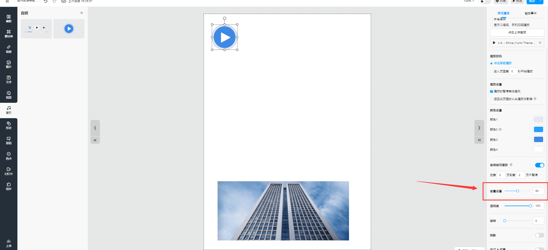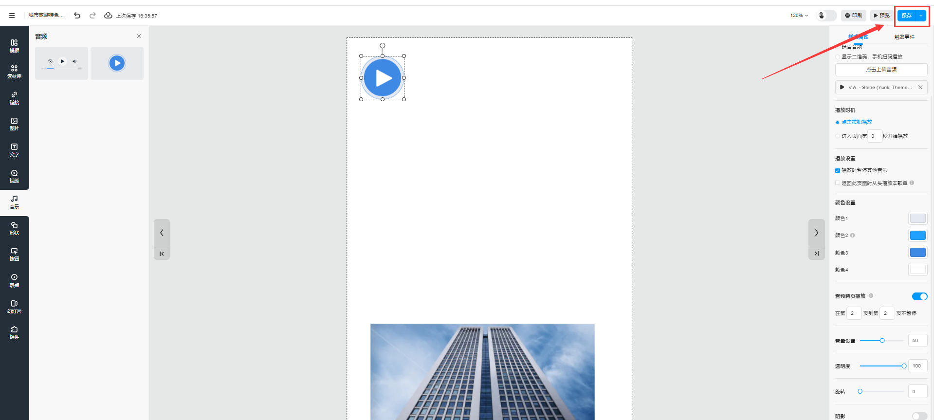 音頻跨頁播放設(shè)置好以后,點(diǎn)擊右上角【保存】即可