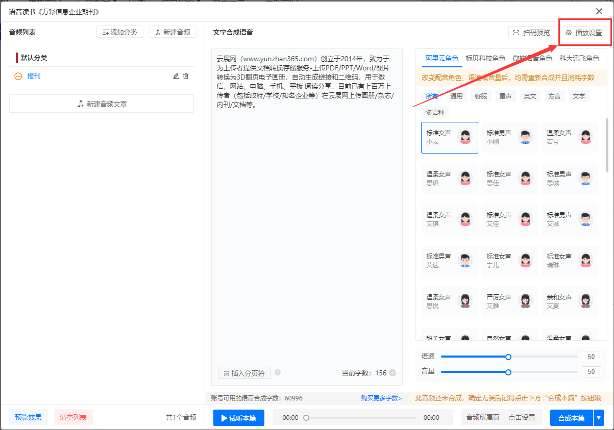 點擊【播放設(shè)置】打開,設(shè)置播放配置