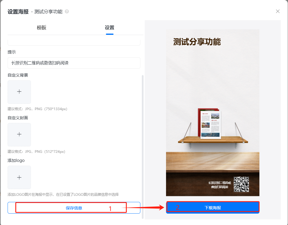 編輯好之后點(diǎn)擊【保存信息】,然后點(diǎn)擊【下載海報(bào)】,即可下載下來。