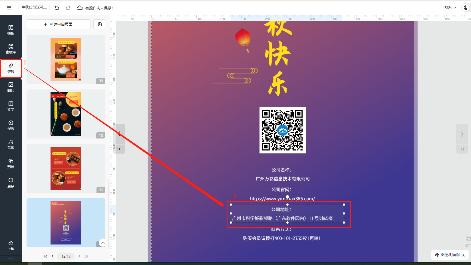 點擊【鏈接】,將鏈接框移動到指定位置。