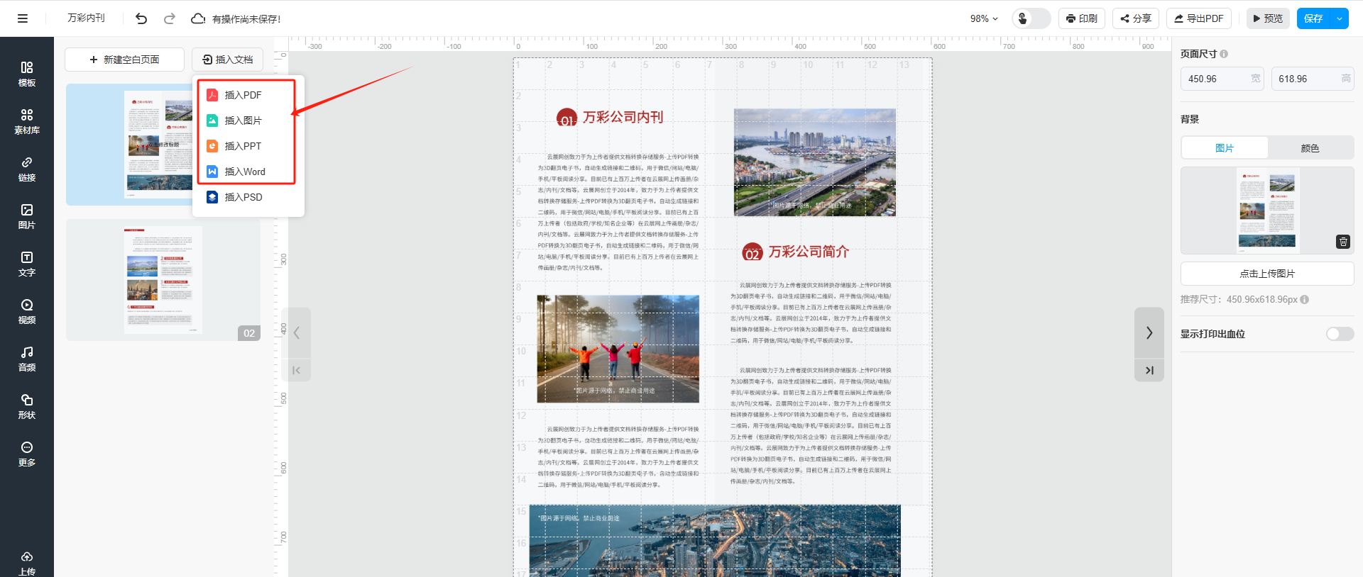 云展網(wǎng)支持給做好的書(shū)本增加頁(yè)面。例如您制作的產(chǎn)品手冊(cè)需要增加產(chǎn)品頁(yè),給企業(yè)內(nèi)刊新增頁(yè)面內(nèi)容都可以使用這個(gè)功能。