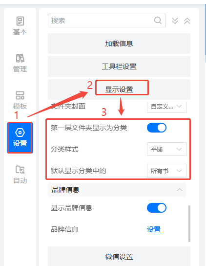 點擊【設(shè)置】,打開【顯示設(shè)置】,找到并打開【第一層文件夾顯示為分類】。