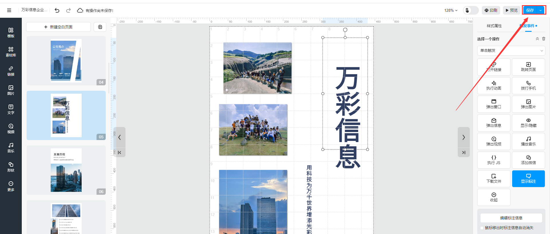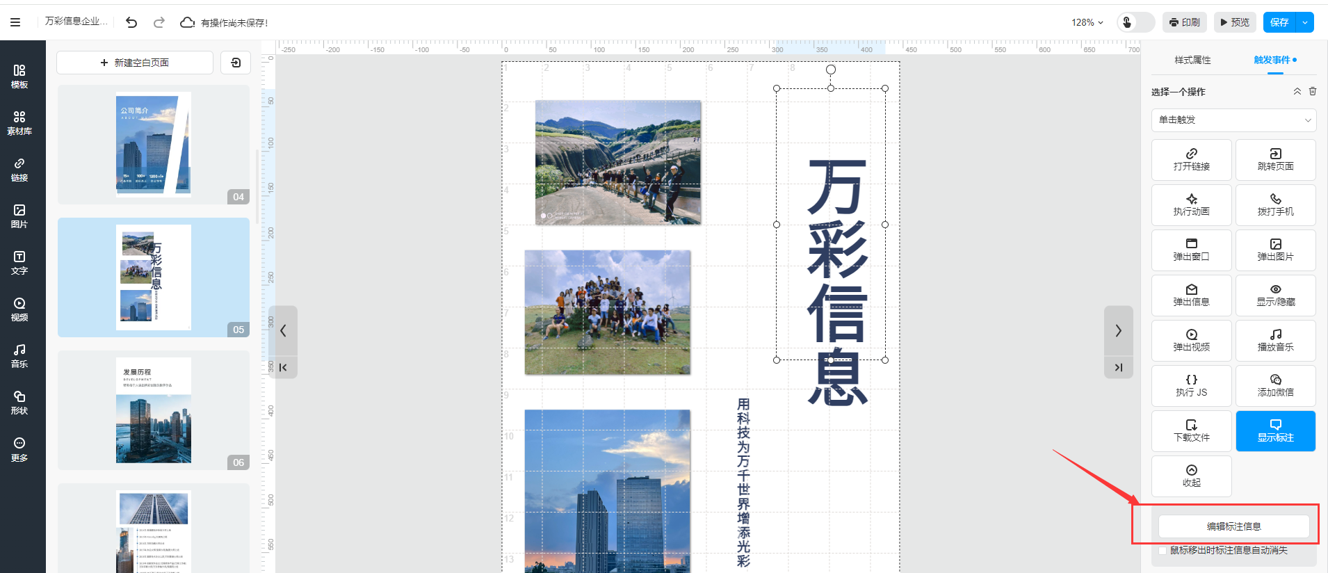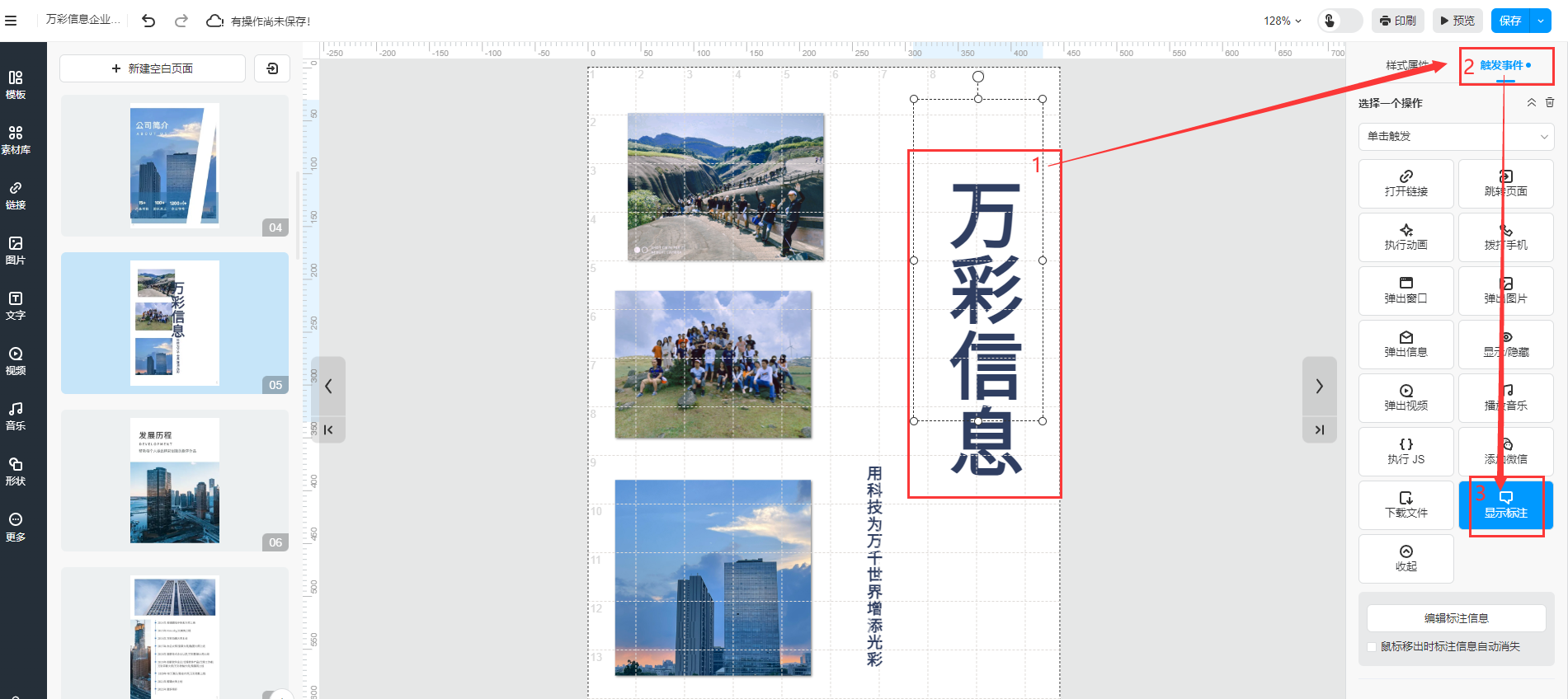 選擇圖片/文字/圖標(biāo),點擊【觸發(fā)事件】,對其設(shè)置【顯示標(biāo)注】功能