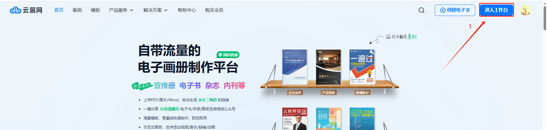 你可以從云展網(wǎng)首頁點擊【我的文檔】/【進入工作臺】界面