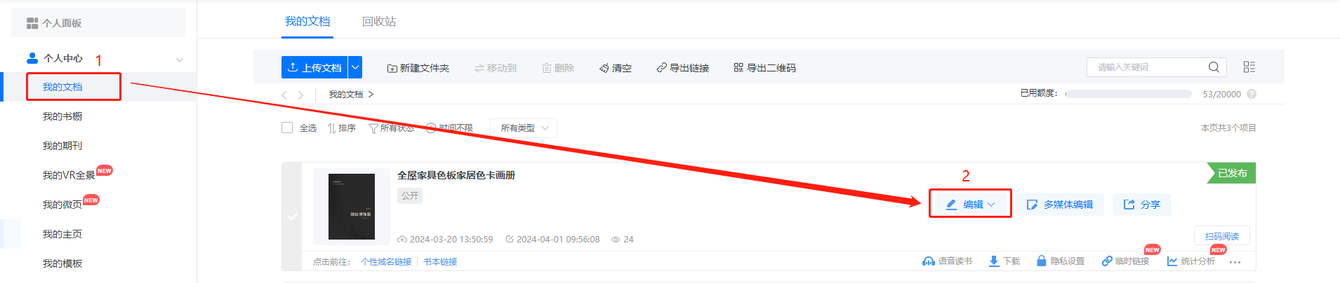 點(diǎn)擊【我的文檔】,然后點(diǎn)擊【編輯】