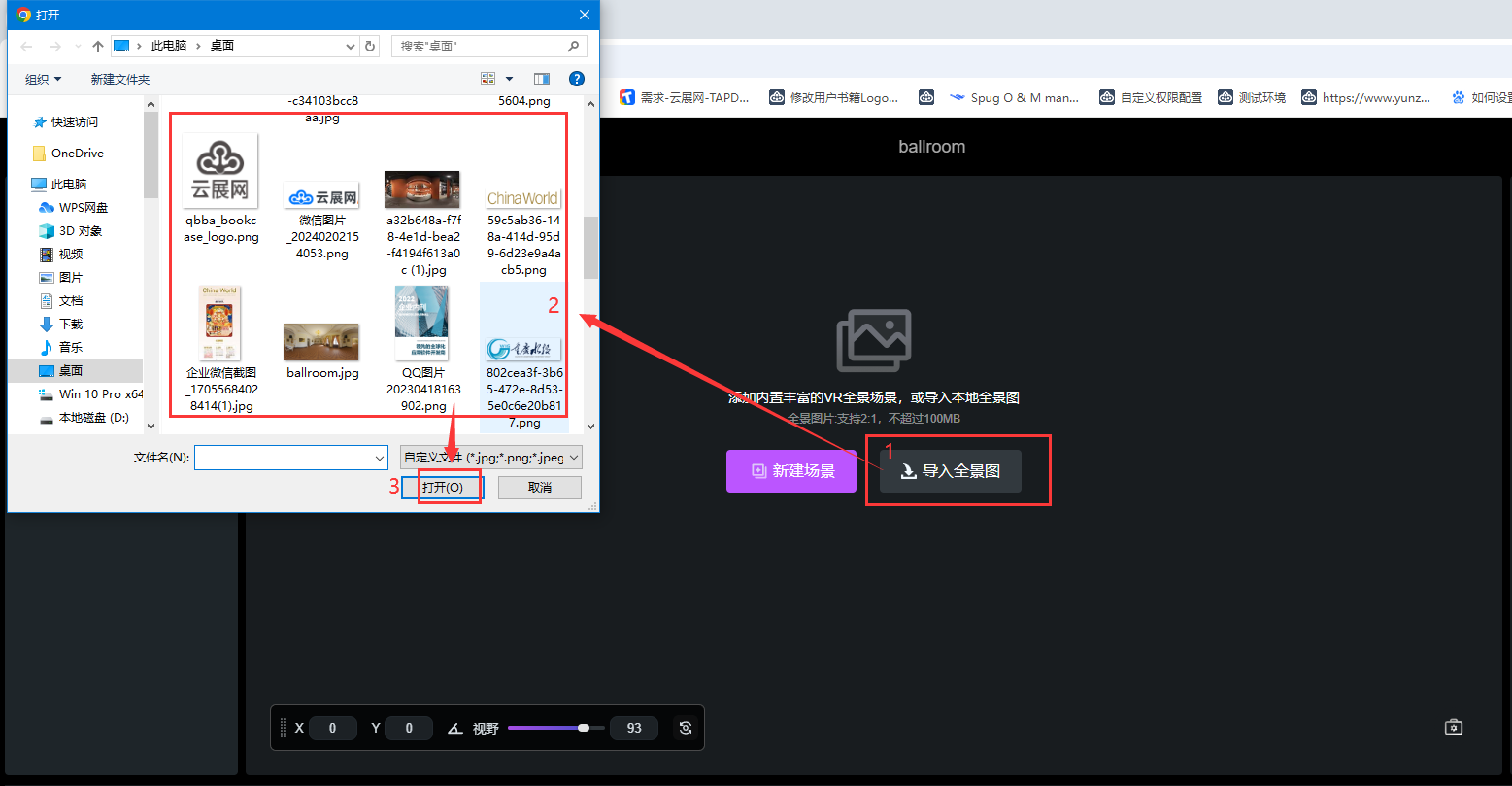 點擊【導入全景圖】,上傳自己本地的全景圖轉換成在線的全景空間