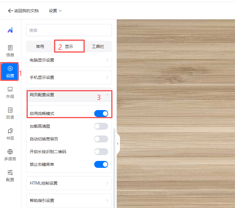 點(diǎn)擊【設(shè)置】,點(diǎn)擊【顯示】,找到【網(wǎng)頁配置設(shè)置】,勾選【啟用流暢模式】即可。