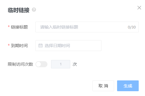 2、配置“鏈接標(biāo)題”輸入分享的鏈接名稱,如:“XX產(chǎn)品畫冊(cè)”接著設(shè)置“到期時(shí)間”“限制訪問次數(shù)”完成后點(diǎn)擊生成。