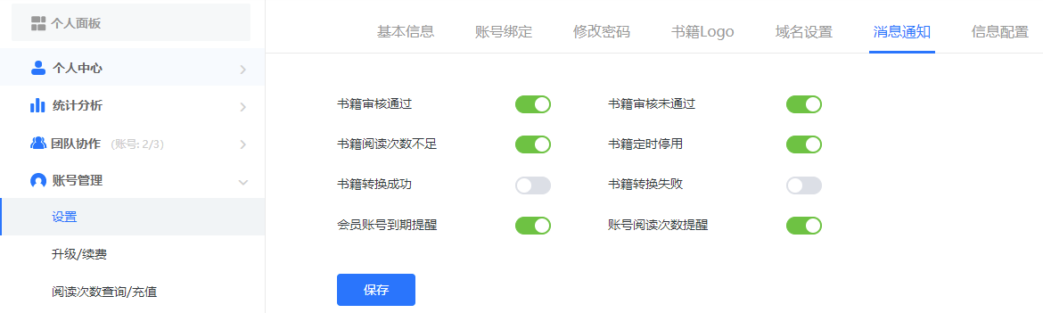 用戶注冊成功后,默認接受上傳書籍審核通過與審核未通過的郵件通知。如果不想收到該郵件,或者只接受某類郵件,請再信息通知欄設置相關信息。