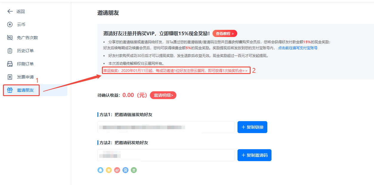 邀請好友注冊云展網(wǎng)抽免廣告次數(shù)(100%中獎),要求使用您自己的邀請鏈接或邀請碼邀請好友注冊。