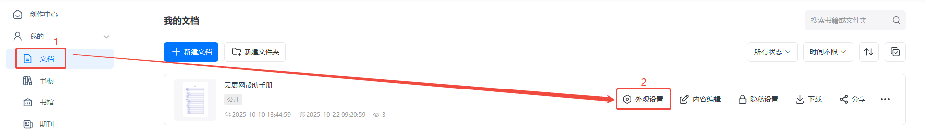 在【文檔】找到需要設(shè)置的電子書,點擊【外觀設(shè)置】進入。