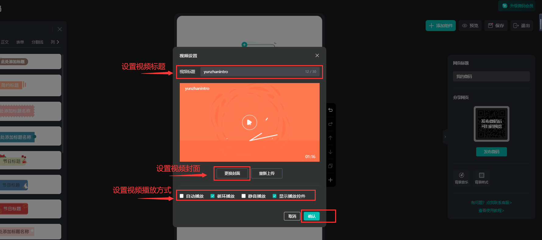 設(shè)置視頻標(biāo)題、封面和播放方式,設(shè)置好后點(diǎn)擊【確認(rèn)】