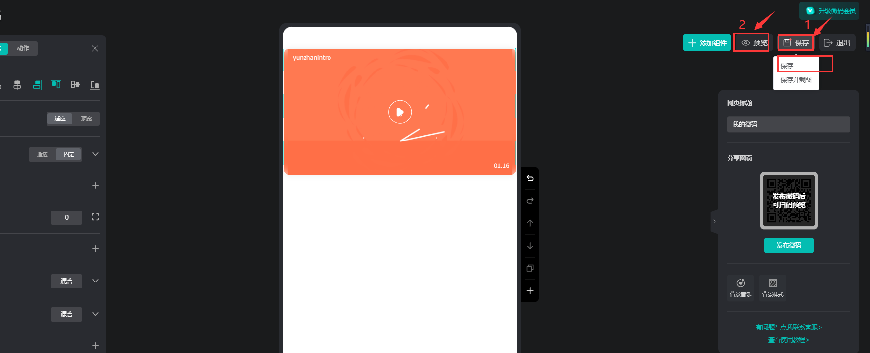 點(diǎn)擊【添加組件】,點(diǎn)擊【視頻】,上傳mp4格式的視頻