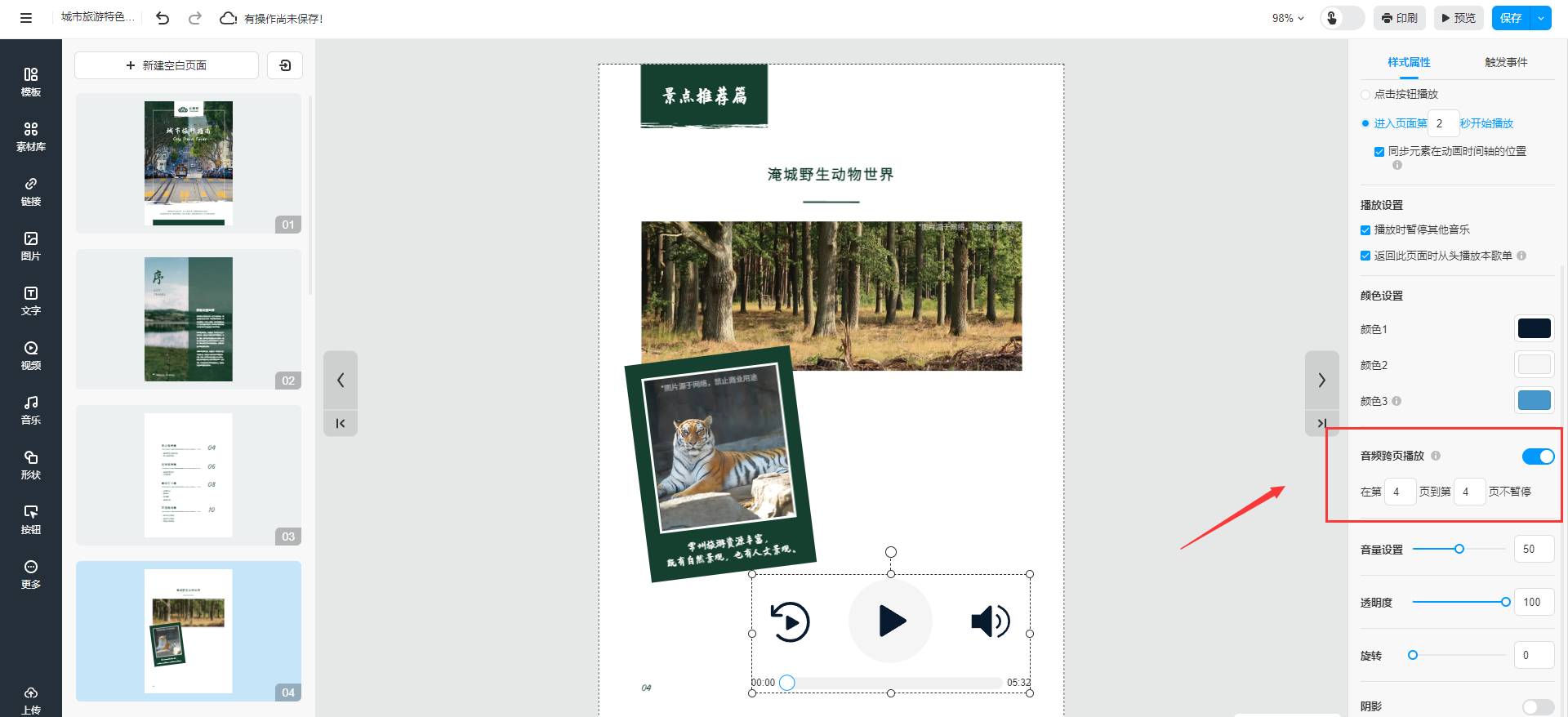 勾選后,根據(jù)你的需求,輸入需要播放音樂的頁數(shù)范圍,此音頻將在指定頁數(shù)內(nèi)播放,翻到指定頁數(shù)外會自動暫停。