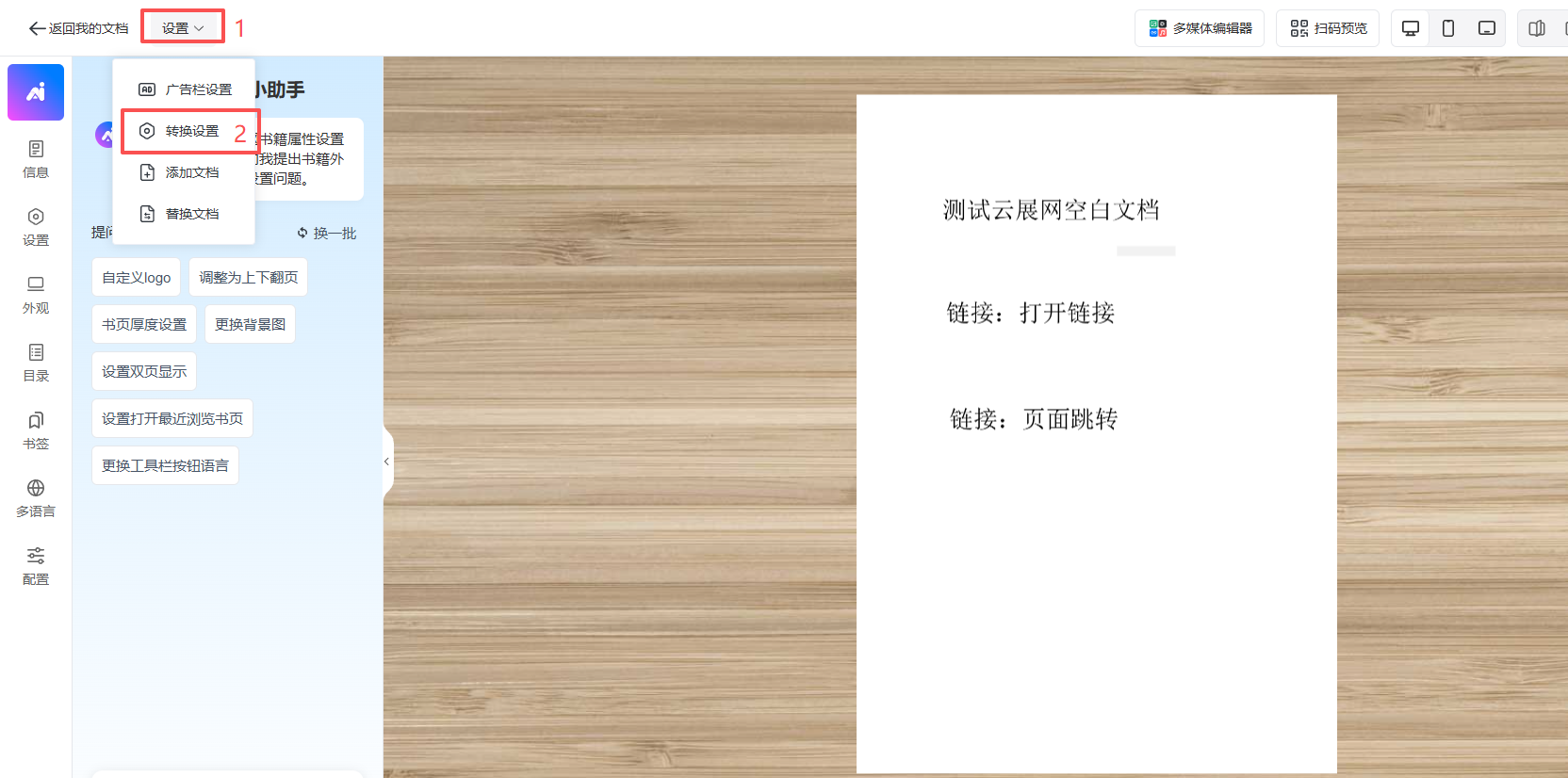 (1)點擊【外觀設(shè)置】,打開書本編輯頁面