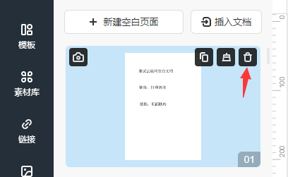 成功插入新文件之后,將鼠標(biāo)移動(dòng)到左邊舊頁面的縮略圖上點(diǎn)擊垃圾桶圖標(biāo),刪除舊頁面。