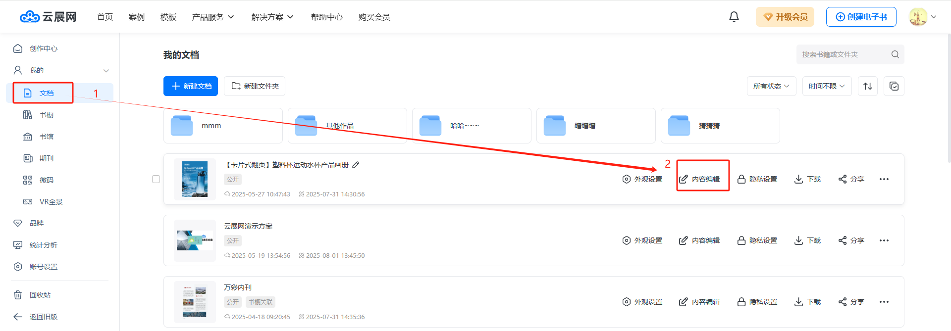 點(diǎn)進(jìn)【文檔】,選擇需要替換頁面的書本,點(diǎn)擊【內(nèi)容編輯】。
