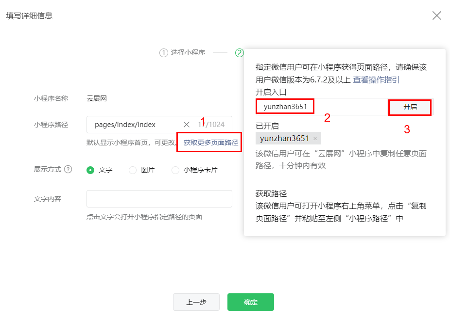 (3)點(diǎn)擊獲取【更多頁(yè)面路徑】,輸入要獲取路徑的微信號(hào),然后開啟