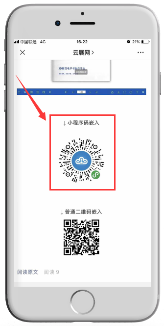 2、文章保存發(fā)布以后,讀者可以通過長(zhǎng)按識(shí)別小程序碼打開電子書/書櫥。