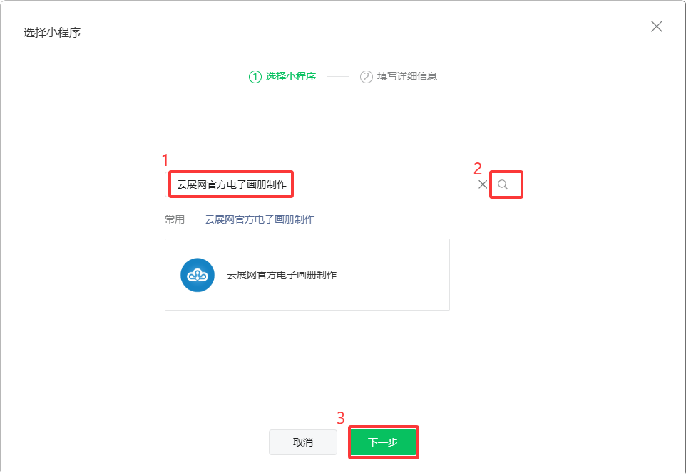 (2)輸入“云展網(wǎng)官方電子畫冊(cè)制作”進(jìn)行搜索