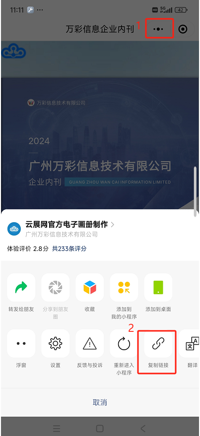 微信掃描書籍小程序二維碼,點(diǎn)擊右上角的【…】按鈕,復(fù)制小程序鏈接